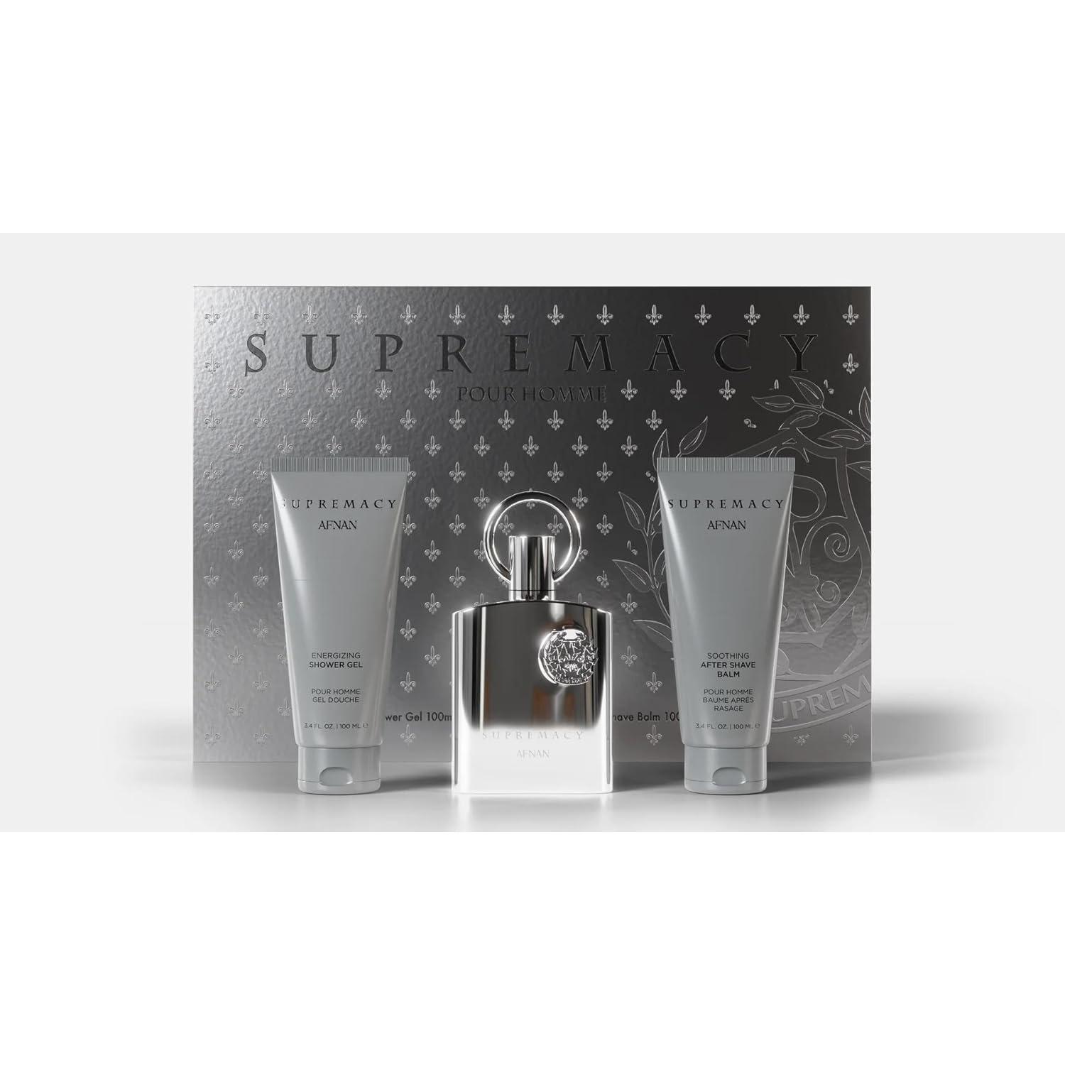Descubre el poder de una fragancia que fusiona frescura, elegancia y masculinidad en un solo gesto. Afnan Supremacy Silver pour Homme es una propuesta refinada para el hombre que cuida su imagen y valora una presencia distinguida. Este set de lujo incluye un Eau de Parfum 100 ml, gel de ducha 100 ml y bálsamo aftershave 100 ml, ofreciendo una experiencia aromática completa.