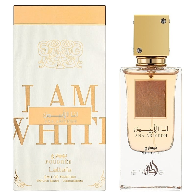Ana Abyedh Poudrée de Lattafa Perfumes es una fragancia de la familia olfativa Floral para Mujeres. Esta fragrancia es nueva. Ana Abyedh Poudrée se lanzó en 2023. Las Notas de Salida son flor de azahar del naranjo, jazmín y rosa; la Nota de Corazón es almizcle; las Notas de Fondo son vainilla, haba tonka, cedro, vetiver y pachulí.